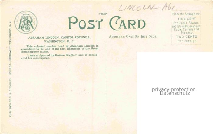 74105015 LINCOLN Abraham (1809-1865) President Politik USA Capitol Rotunda Washington postalisch nicht gelaufen Erhaltung siehe scans [IrynaD87] KatCode: 14140