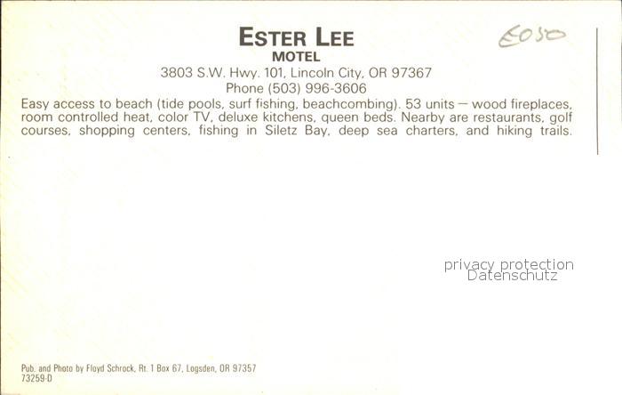 72289696 Lincoln City Oregon Ester Lee Motel postalisch nicht gelaufen Werbekarte (keine Postkarte) Erhaltung siehe scans KatCode: 14140400000000