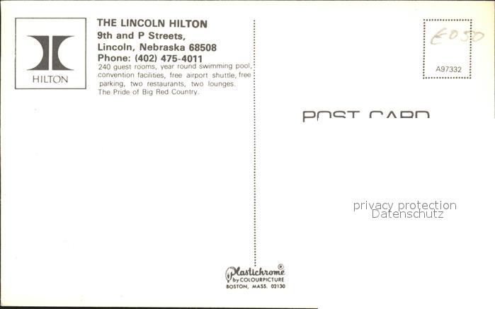 72271990 Lincoln Nebraska Lincoln Hilton postalisch nicht gelaufen Erhaltung siehe scans KatCode: 14140290000000