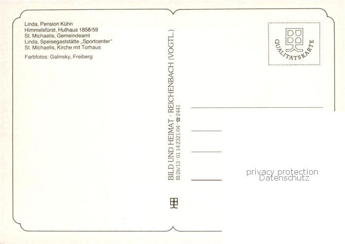 73759174 Linda Freiberg St. Michaelis-Gemeindeamt Himmelsfuerst-Huthaus Linda-Speisegaststaette-Sportcenter postalisch nicht gelaufen Erhaltung siehe scans [LiesaD40] KatCode: 11110014177150