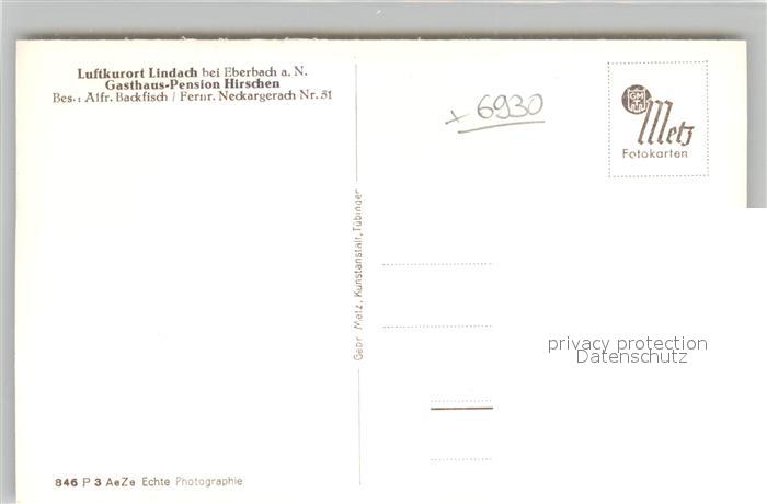 42934473 Lindach Eberbach Gasthaus Pension Hirschen postalisch nicht gelaufen Erhaltung siehe scans [KathaD81] KatCode: 11110008226013