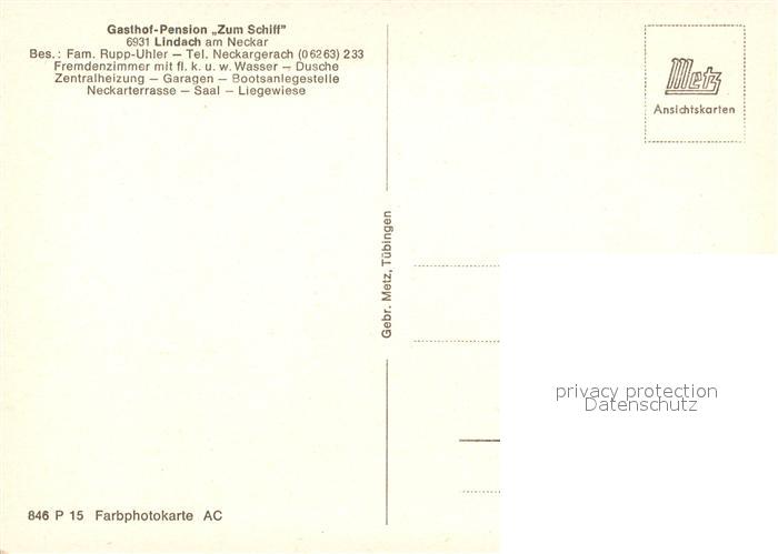 73087744 Lindach Eberbach Gasthof Pension Zum Schiff postalisch nicht gelaufen Erhaltung siehe scans [KathaD81] KatCode: 11110008226013