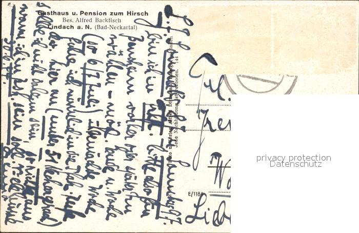 72095786 alte Postkarte Lindach Schwaebisch Gmuend Gasthaus Pension zum Hirsch Terrasse postalisch gelaufen Erhaltung siehe scans KatCode: 11110008136065
