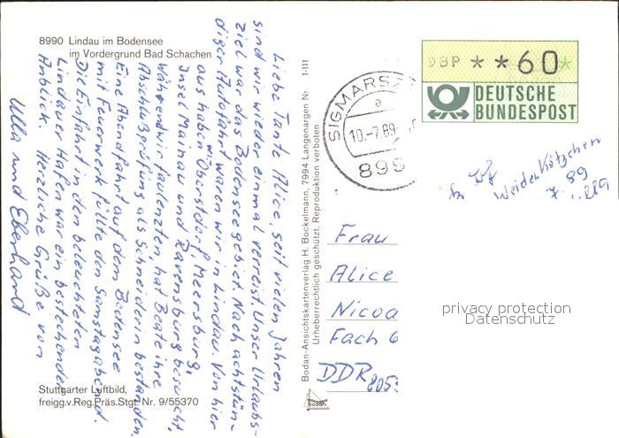 71952697 alte Postkarte Lindau Bodensee Bad Schachen postalisch gelaufen Erhaltung siehe scans KatCode: 11110009776116