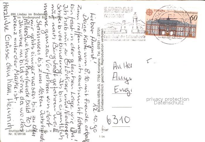 72469753 alte Postkarte Lindau Bodensee Bad Schachen Alpen Fliegeraufnahme postalisch gelaufen Erhaltung siehe scans KatCode: 11110009776116