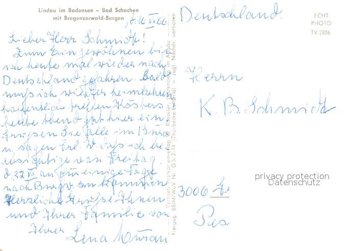 73646651 Lindau Bodensee Bad Schachen mit Bregenzerwald Bergen Alpen Fliegeraufnahme postalisch nicht gelaufen Erhaltung siehe scans [FriedD77] KatCode: 11110009776116