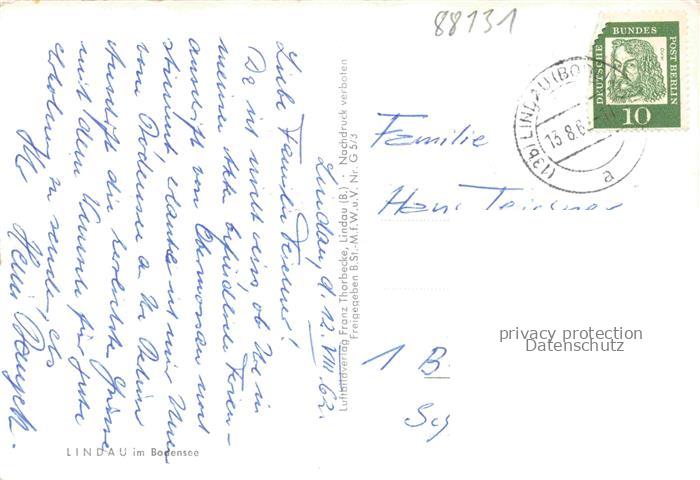 74105172 alte Postkarte LINDAU Bodensee Bayern Stadtzentrum Hafen postalisch gelaufen Fliegeraufnahme Erhaltung siehe scans [FriedD77] KatCode: 11110009776116