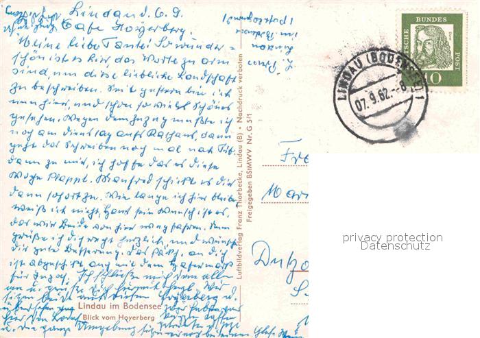 72636221 alte Postkarte Lindau Bodensee Blick vom Hoyerberg postalisch gelaufen Erhaltung siehe scans [WerneD78] KatCode: 11110009776116