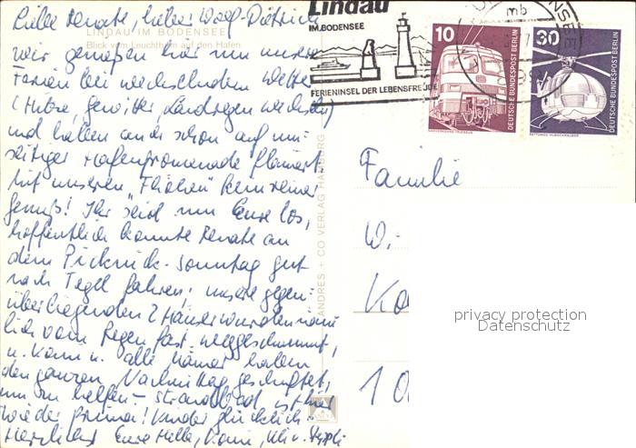 72597272 alte Postkarte Lindau Bodensee Blick vom Leuchtturm auf den Hafen Turm Dampfer postalisch gelaufen Erhaltung siehe scans [FriedD77] KatCode: 11110009776116