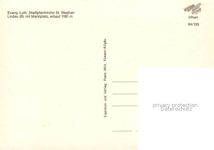 73019040 Lindau Bodensee Ev luth Stadtpfarrkirche St Stephan postalisch nicht gelaufen Erhaltung siehe scans [WerneD78] KatCode: 11110009776116
