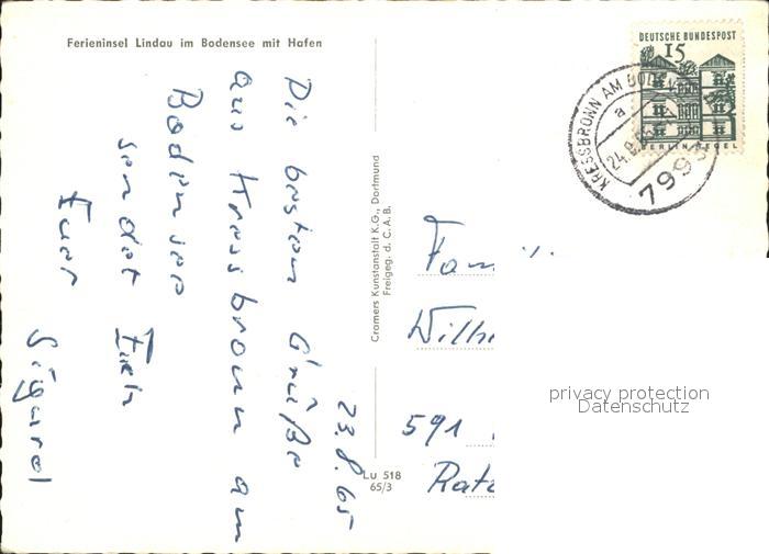 72297407 alte Postkarte Lindau Bodensee Ferieninsel Hafen Faehre Fliegeraufnahme postalisch gelaufen Erhaltung siehe scans KatCode: 11110009776116
