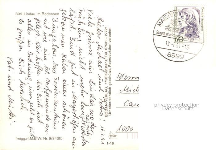 73204894 alte Postkarte Lindau Bodensee Fliegeraufnahme postalisch gelaufen Erhaltung siehe scans [PaolaD17] KatCode: 11110009776116