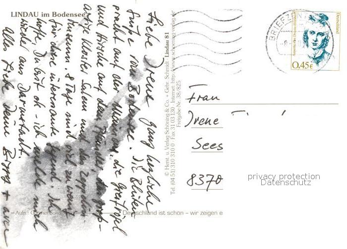 72991231 alte Postkarte Lindau Bodensee Fliegeraufnahme postalisch gelaufen Erhaltung siehe scans [WerneD78] KatCode: 11110009776116