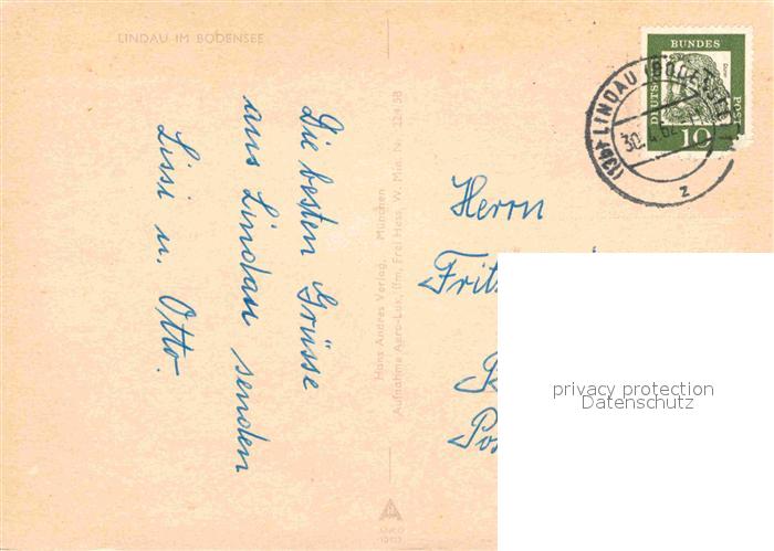 72764470 alte Postkarte Lindau Bodensee Fliegeraufnahme postalisch gelaufen Erhaltung siehe scans [AndreD76] KatCode: 11110009776116