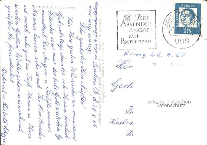 72409451 alte Postkarte Lindau Bodensee Fliegeraufnahme postalisch gelaufen Erhaltung siehe scans KatCode: 11110009776116