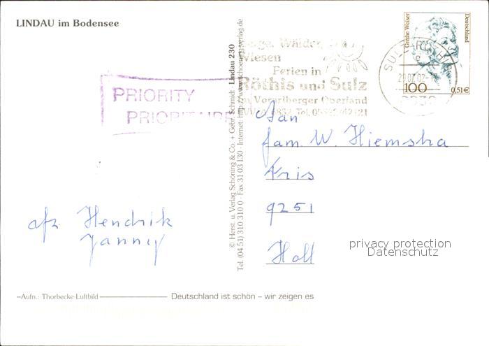 71915457 alte Postkarte Lindau Bodensee Fliegeraufnahme postalisch gelaufen Erhaltung siehe scans KatCode: 11110009776116