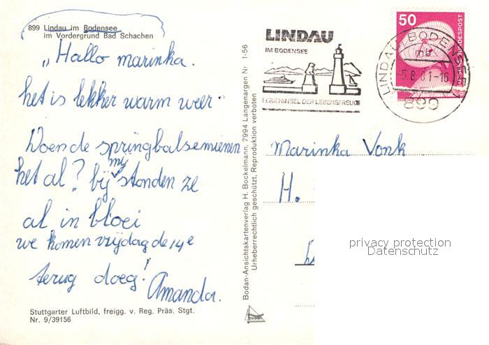 72930027 alte Postkarte Lindau Bodensee Fliegeraufnahme mit Bad Schachen postalisch gelaufen Erhaltung siehe scans [WerneD78] KatCode: 11110009776116