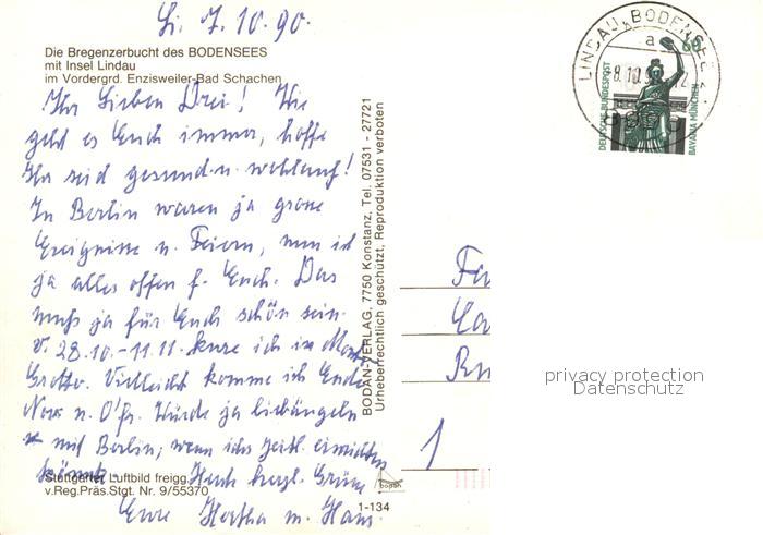 73210991 alte Postkarte Lindau Bodensee Fliegeraufnahme mit Enzisweiler und Bad Schachen postalisch gelaufen Erhaltung siehe scans [WerneD78] KatCode: 11110009776116