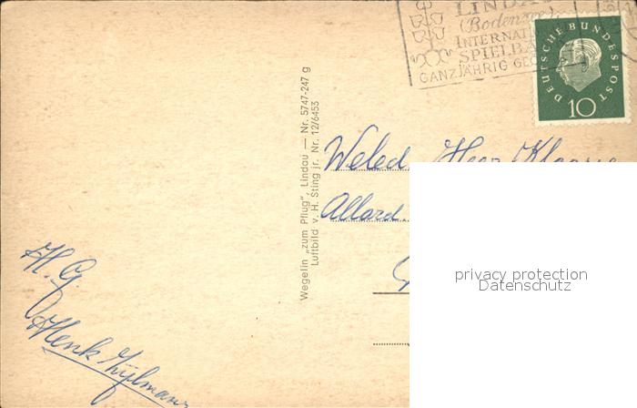 72428921 alte Postkarte Lindau Bodensee Hafeneinfahrt Fliegeraufnahme postalisch gelaufen Erhaltung siehe scans KatCode: 11110009776116