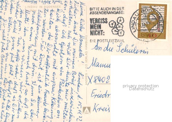 73746164 alte Postkarte Lindau Bodensee Hafenpartie Faehre postalisch gelaufen Erhaltung siehe scans [WerneD78] KatCode: 11110009776116