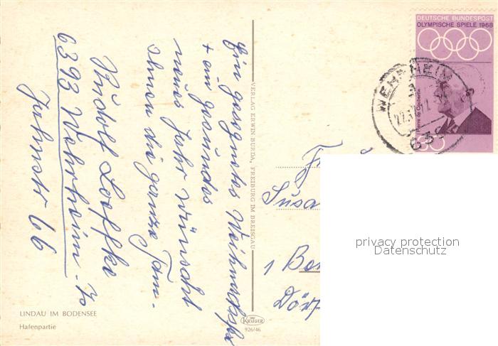 73125415 alte Postkarte Lindau Bodensee Hafenpartie Parkanlagen Dampfer Turm postalisch gelaufen Erhaltung siehe scans [FriedD77] KatCode: 11110009776116