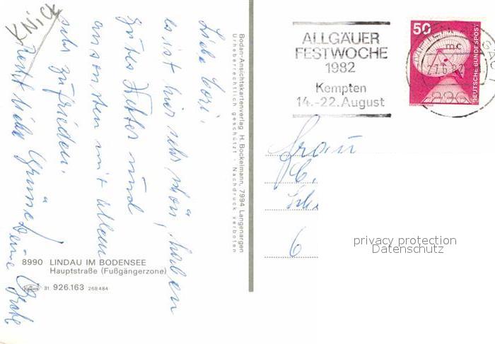 72718289 alte Postkarte Lindau Bodensee Hauptstrasse postalisch gelaufen Erhaltung siehe scans [LiesaD40] KatCode: 11110009776116
