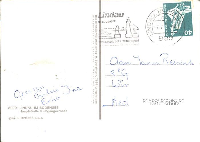 72060144 alte Postkarte Lindau Bodensee Hauptstrasse postalisch gelaufen Erhaltung siehe scans KatCode: 11110009776116