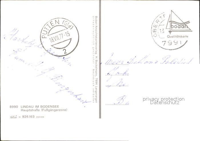 72270667 alte Postkarte Lindau Bodensee Hauptstrasse Fussgaengerzone Strassencafe postalisch gelaufen Erhaltung siehe scans KatCode: 11110009776116