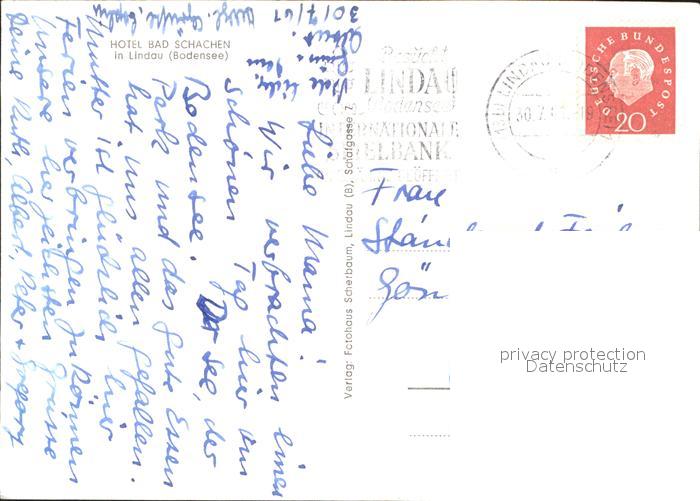 71936719 alte Postkarte Lindau Bodensee Hotel Bad Schachen Faehrschiff postalisch gelaufen KatCode: 11110009776116