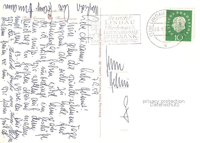 73041481 alte Postkarte Lindau Bodensee Hotel Bayrischer Hof Reutemann Seegarten postalisch gelaufen Erhaltung siehe scans [NatalD47] KatCode: 11110009776116