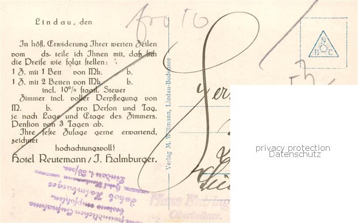 73850953 Lindau Bodensee Hotel Reutemann postalisch nicht gelaufen Erhaltung siehe scans [WerneD78] Wern Katcode 11110009776116