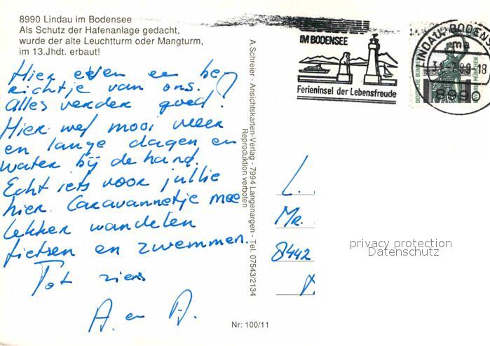72787358 alte Postkarte Lindau Bodensee Leuchtturm Mangturm Promenade Faehren Fliegeraufnahme postalisch gelaufen Erhaltung siehe scans [WerneD78] KatCode: 11110009776116