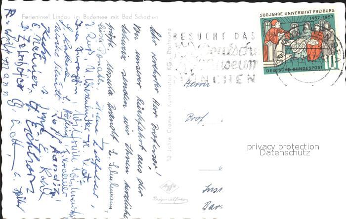 72277532 alte Postkarte Lindau Bodensee mit Bad Schachen Fliegeraufnahme postalisch gelaufen Erhaltung siehe scans KatCode: 11110009776116