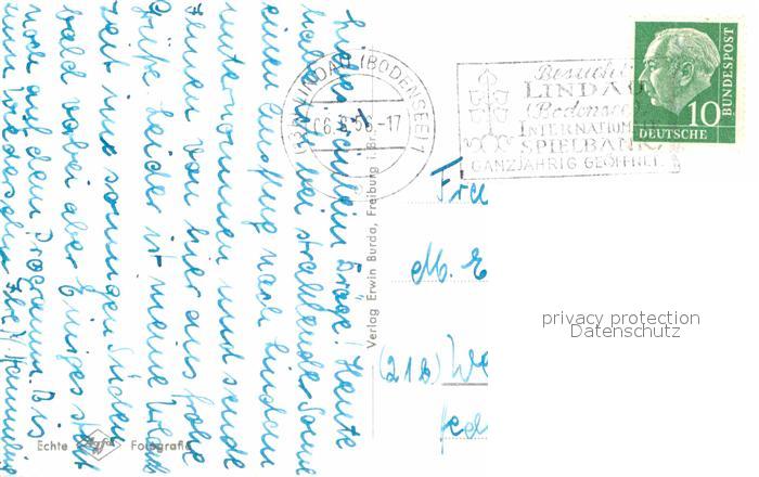 72754401 alte Postkarte Lindau Bodensee Reichsplatz mit Lindavia Brunnen und Hafeneinfahrt postalisch gelaufen Erhaltung siehe scans [FriedD77] KatCode: 11110009776116