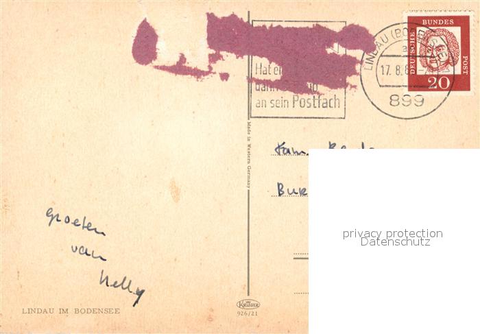 73313715 alte Postkarte Lindau Bodensee Seepartie Fliegeraufnahme postalisch gelaufen Erhaltung siehe scans [LiesaD40] KatCode: 11110009776116