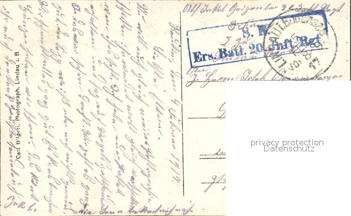 32313615 alte Postkarte Lindau Bodensee Weltkrieg 1 Ersatz Infanterie Regiment 20 postalisch gelaufen Feldpost Erhaltung siehe scans KatCode: 11110009776116