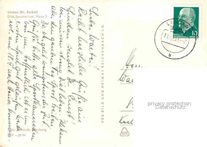 72643477 alte Postkarte Lindau Zerbst Diaet Sanatorium postalisch gelaufen Erhaltung siehe scans [WerneD78] KatCode: 11110015082430