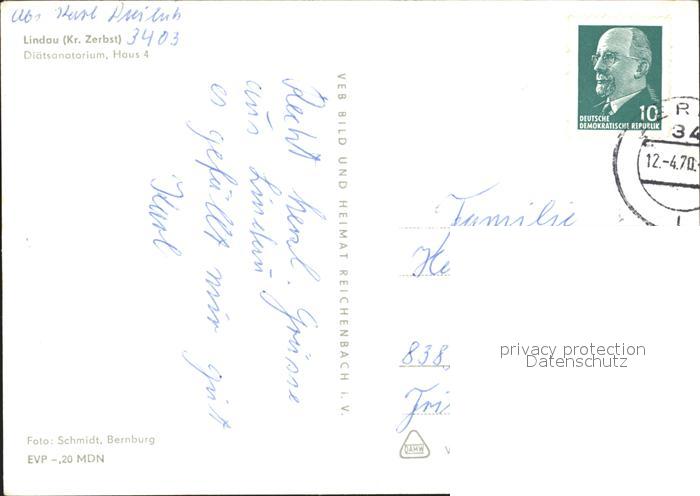 72221306 alte Postkarte Lindau Zerbst Diaetsanatorium Haus 4 postalisch gelaufen Erhaltung siehe scans KatCode: 11110015082430