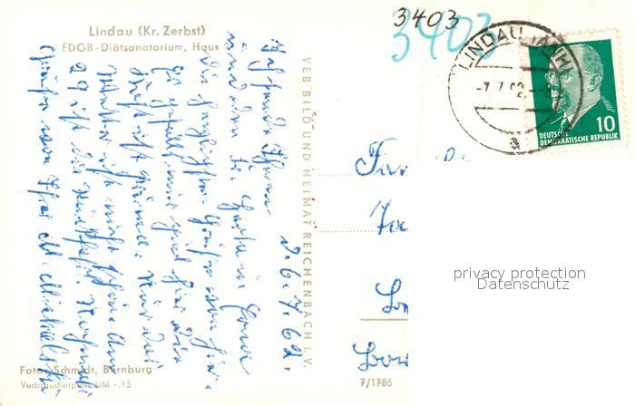 43495933 alte Postkarte Lindau Zerbst FDGB Diaetsanatorium postalisch gelaufen Erhaltung siehe scans [FriedD77] KatCode: 11110015082430