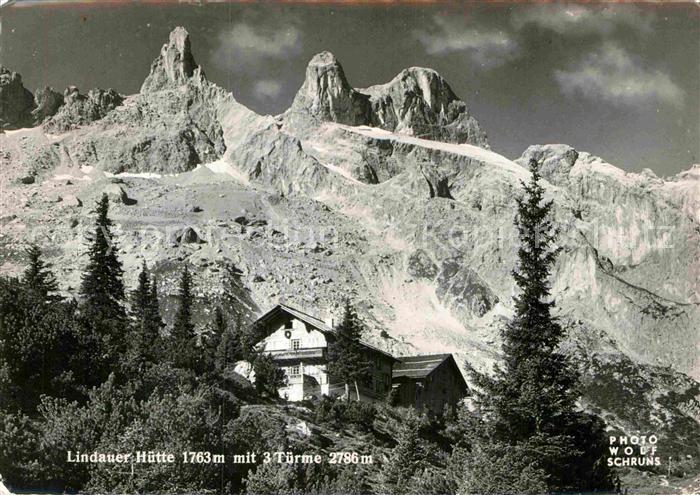 72860173 alte Postkarte Lindauer Huette Berghuette mit Drei Tuerme Raetikon postalisch gelaufen Erhaltung siehe scans [FriedD77] KatCode: 11390341080128
