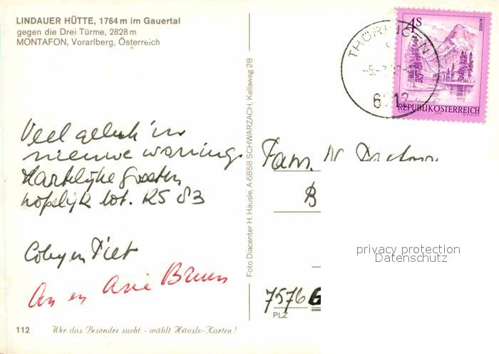 72862549 alte Postkarte Lindauer Huette im Gauertal gegen die Drei Tuerme Montafon postalisch gelaufen Erhaltung siehe scans [FriedD77] KatCode: 11390341080128