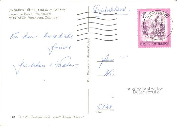 71962531 alte Postkarte Lindauerhuette Gauertal Drei Tuerme Montafon postalisch gelaufen Erhaltung siehe scans KatCode: 11390