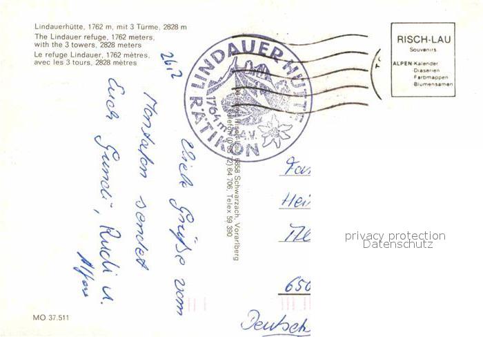 72832150 alte Postkarte Lindauerhuette postalisch gelaufen Erhaltung siehe scans [LiesaD40] KatCode: 11390