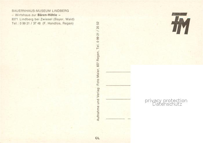73651399 Lindberg Regen Bauernhaus-Museum Lindberg Wirtshaus zur Baerenhoehle postalisch nicht gelaufen Erhaltung siehe scans [FriedD77] KatCode: 11110009276130