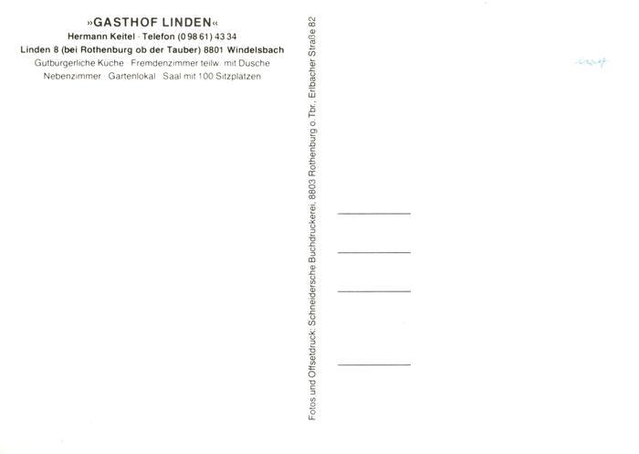 73897543 Linden Rothenburg Tauber Gasthof Linden Freiterrasse postalisch nicht gelaufen Erhaltung siehe scans [WerneD78] KatCode: 11110009571225