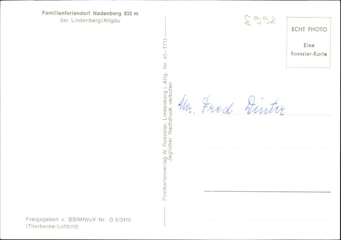 30726871 Lindenberg Allgaeu amilienferiendorf Nadenberg Fliegeraufnahme postalisch nicht gelaufen KatCode: 11110009776117