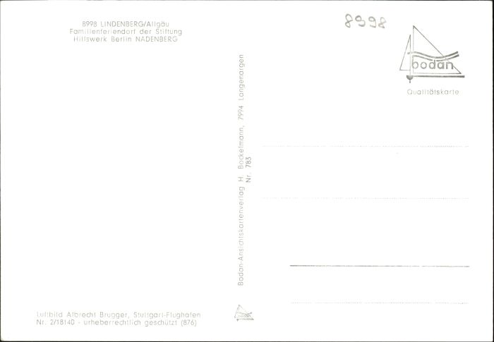30726873 Lindenberg Allgaeu amilienferiendorf Nadenberg Fliegeraufnahme postalisch nicht gelaufen KatCode: 11110009776117
