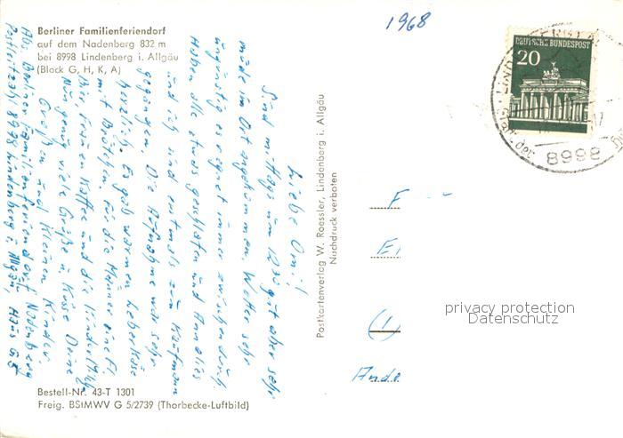 73668843 alte Postkarte Lindenberg Allgaeu Berliner Familienferiendorf auf dem Nadenberg Fliegeraufnahme postalisch gelaufen Erhaltung siehe scans [WerneD78] KatCode: 11110009776117