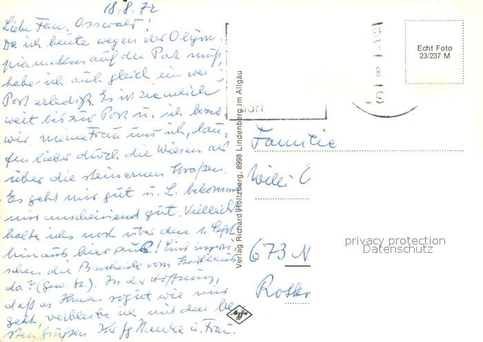 73294073 alte Postkarte Lindenberg Allgaeu Deutsche Alpenstrasse Waldsee postalisch gelaufen Erhaltung siehe scans [NatalD47] KatCode: 11110009776117