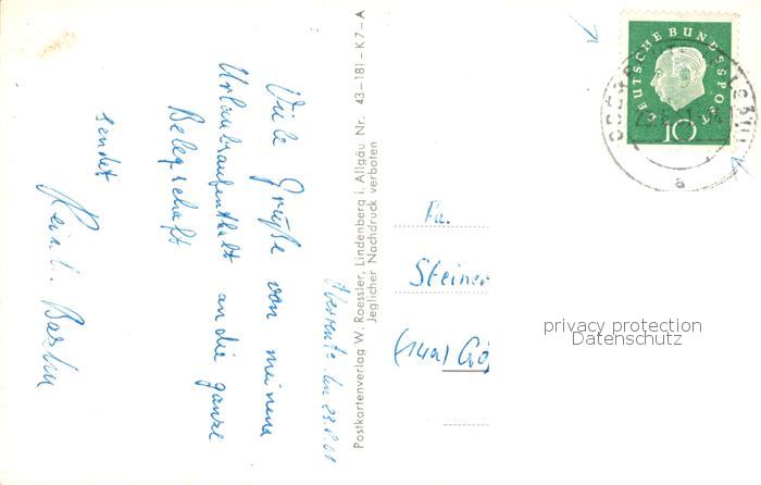 73834998 alte Postkarte Lindenberg Allgaeu Ev Kirche Kath Kirche Eisenbahn Waisenhort Genesungsheim Waldsee Campingplatz postalisch gelaufen Erhaltung siehe scans [WerneD78] KatCode: 11110009776117